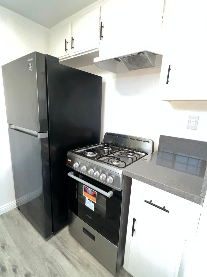 Studio apartment in the upper Vista Del Oro neighborhood of San Pedro, CA. This studio features luxury vinyl plank flooring and dual-pane windows for improved comfort and energy efficiency. The bathroom includes a custom tile tub enclosure with a convenient wall niche for toiletries. One gated carport space is provided for vehicle parking. This building is steps from Weymouth Corners shopping center, and a short walk to famous Averill Park. This is a no smoking property of anything. No pets. Kitchen comes with freestanding gas stove and refrigerator. Well-maintained and thoughtfully updated, this unit offers a practical layout and quality finishes in a desirable location.