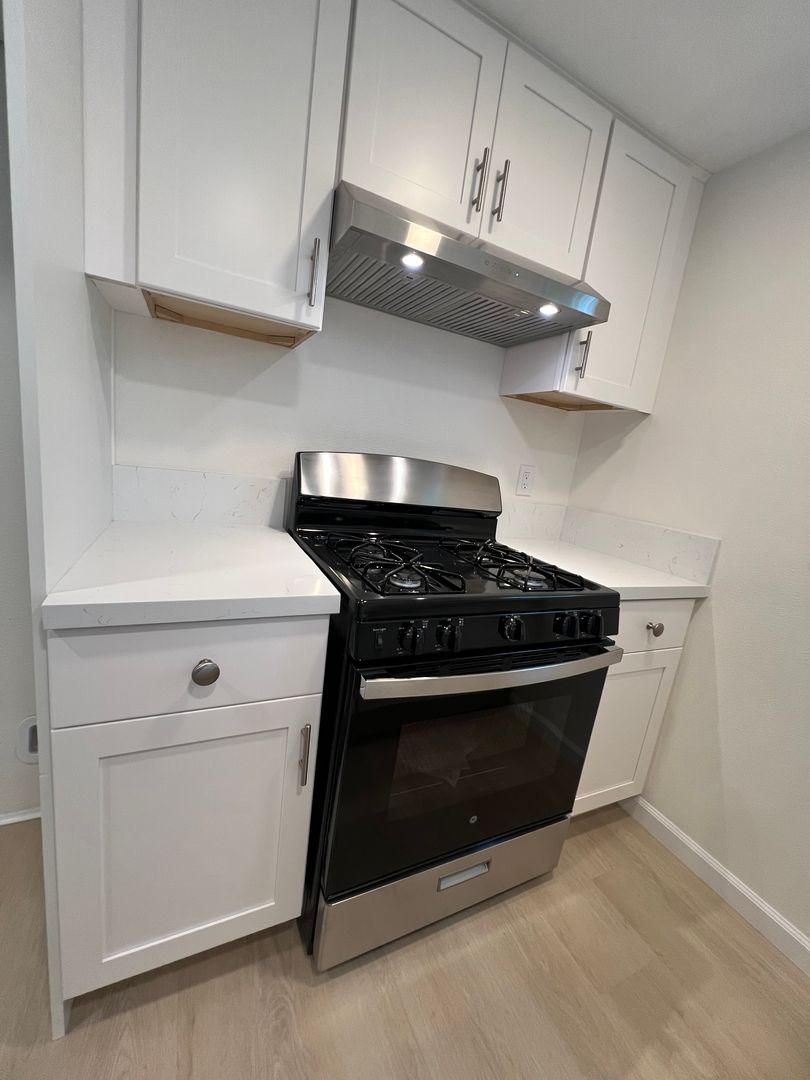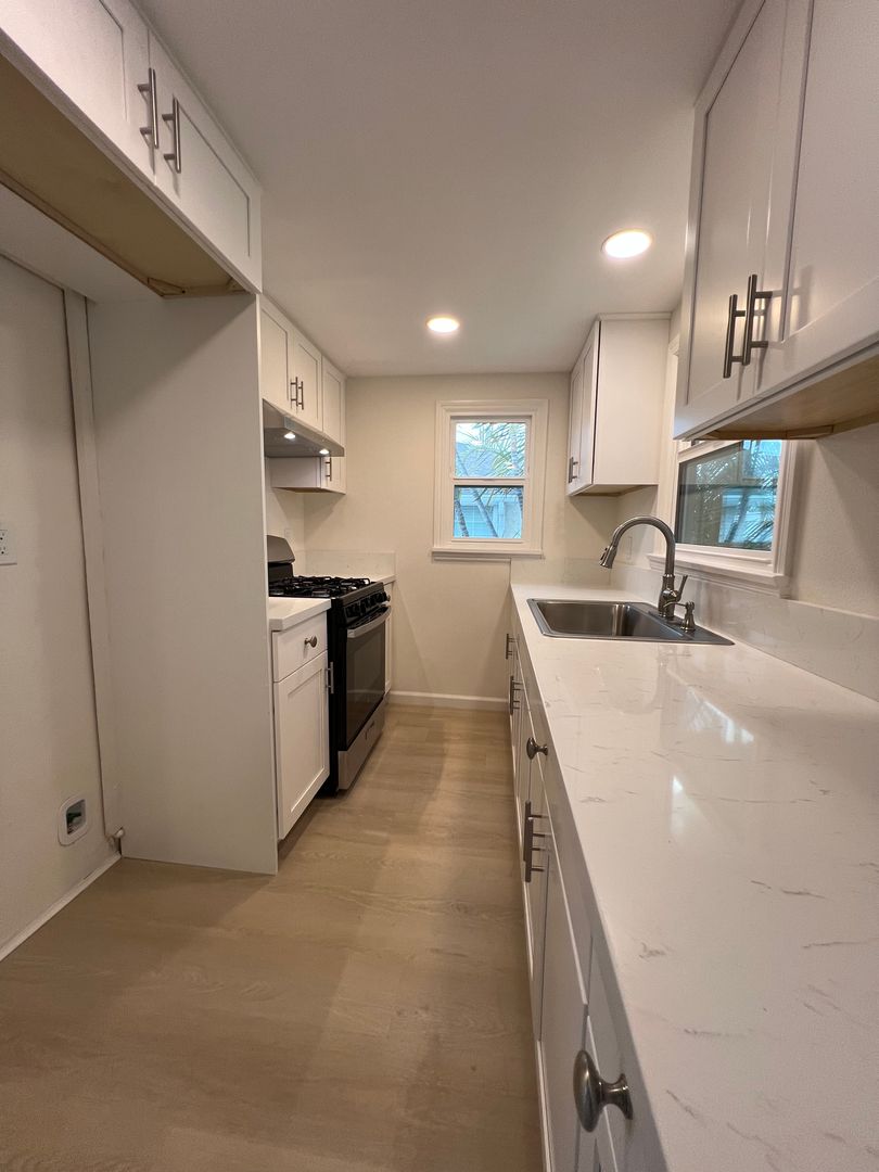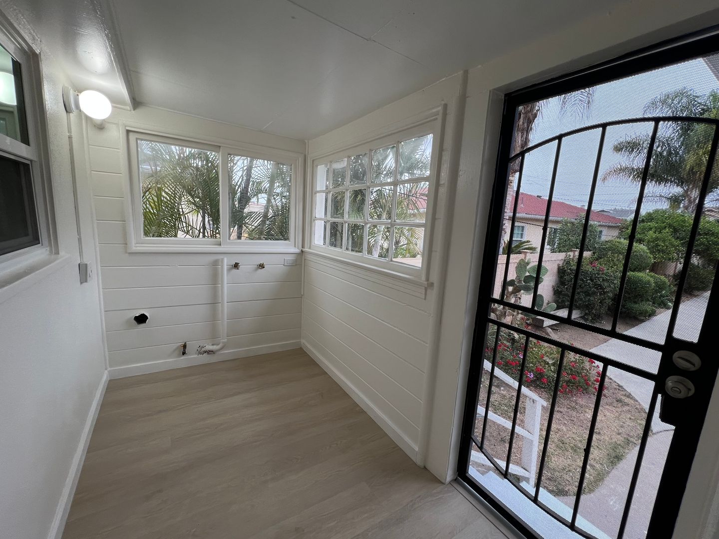 Welcome to 862 W 3rd Street in San Pedro, a stunning one-bedroom, one-bathroom residence located in the vibrant Holy Trinity neighborhood (187). This detached house of two on a lot, boasts a range of modern amenities that elevate everyday living. The interior features LED can lights and new luxury vinyl plank flooring, creating a warm and inviting atmosphere. The all-new kitchen cabinets and white quartz countertops in both the kitchen and bathroom add a touch of elegance and sophistication. The kitchen is all new with large SS single tub sink and new SS freestanding gas stove and range hood. Tenant to supply their own refrigerator. Tenant supplies their own washer & dryer; laundry hookups are located in the enclosed front porch. The rental also comes with new white vinyl dual glazed windows that not only enhance the aesthetic appeal but also offer energy efficiency. A 1-car garage provides secure and convenient parking. The common area backyard is a delightful outdoor space, complete with an orange tree, perfect for enjoying the beautiful California weather. There's a storage building available for additional rent