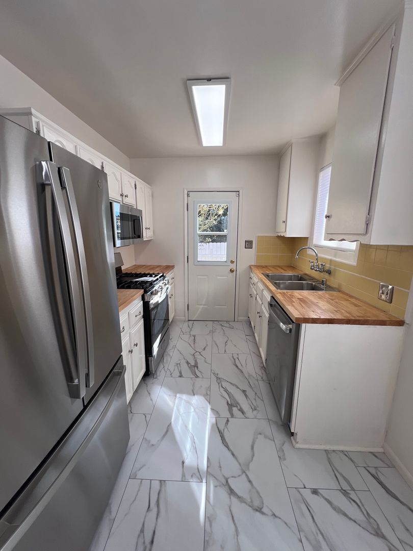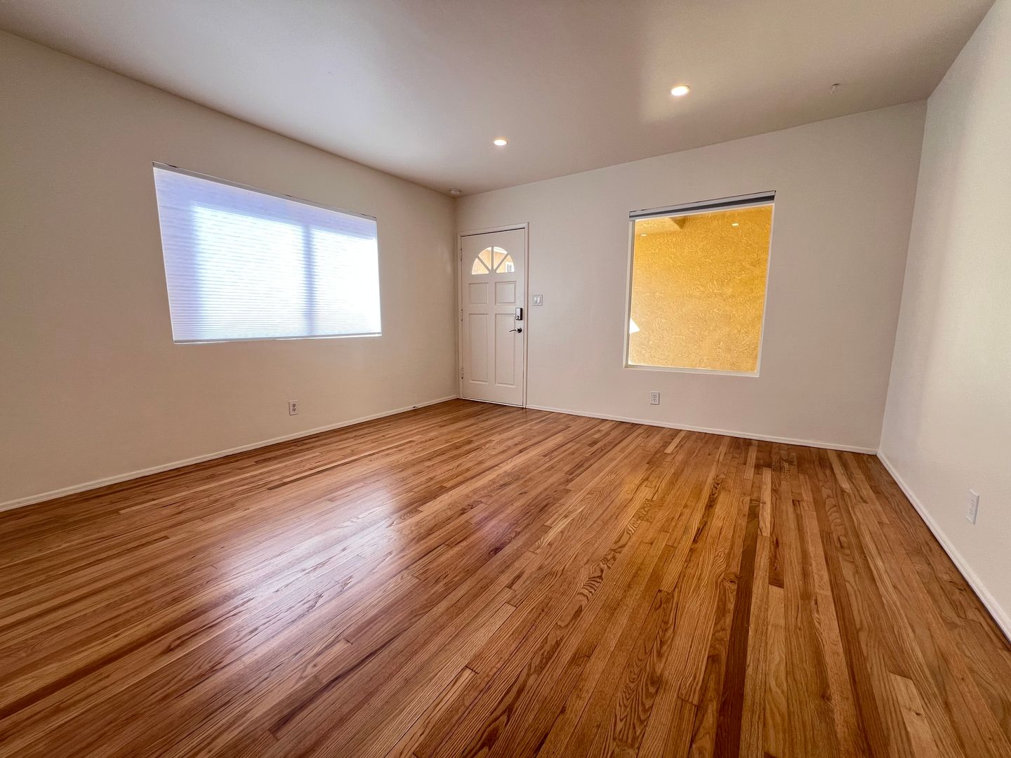Welcome to your new home in the heart of San Pedro, CA. This charming 2-bedroom, 1-bathroom apartment offers a blend of comfort and style. The interior boasts real wood floors that add a touch of elegance to the living space, while the vinyl tile in the kitchen and bathroom ensures easy maintenance. The kitchen space also boasts brand new stainless steel appliances including high end refrigerator and OTR Microwave Oven. The private backyard is a perfect retreat for outdoor relaxation, complete with a flourishing apple tree that adds a touch of nature's beauty. The apartment also features a 1-car garage with laundry hookups, providing convenience right at your doorstep. Additionally, the property includes 1-car off-street breezeway parking, ensuring ample space for your vehicles. Experience the perfect blend of functionality and charm in this San Pedro gem.